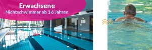 Hast du dir schon immer gewünscht, sicher deine Bahnen ziehen zu können? Möchtest du im Urlaub unbeschwert im Meer baden oder mit deinen Kindern im Wasser toben? Es ist nie zu spät, diesen Wunsch wahr werden zu lassen. In unserem speziellen Anfängerkurs für Erwachsene lernst du in einer kleinen, verständnisvollen Gruppe von Grund auf schwimmen – ganz ohne Druck und in deinem eigenen Tempo.