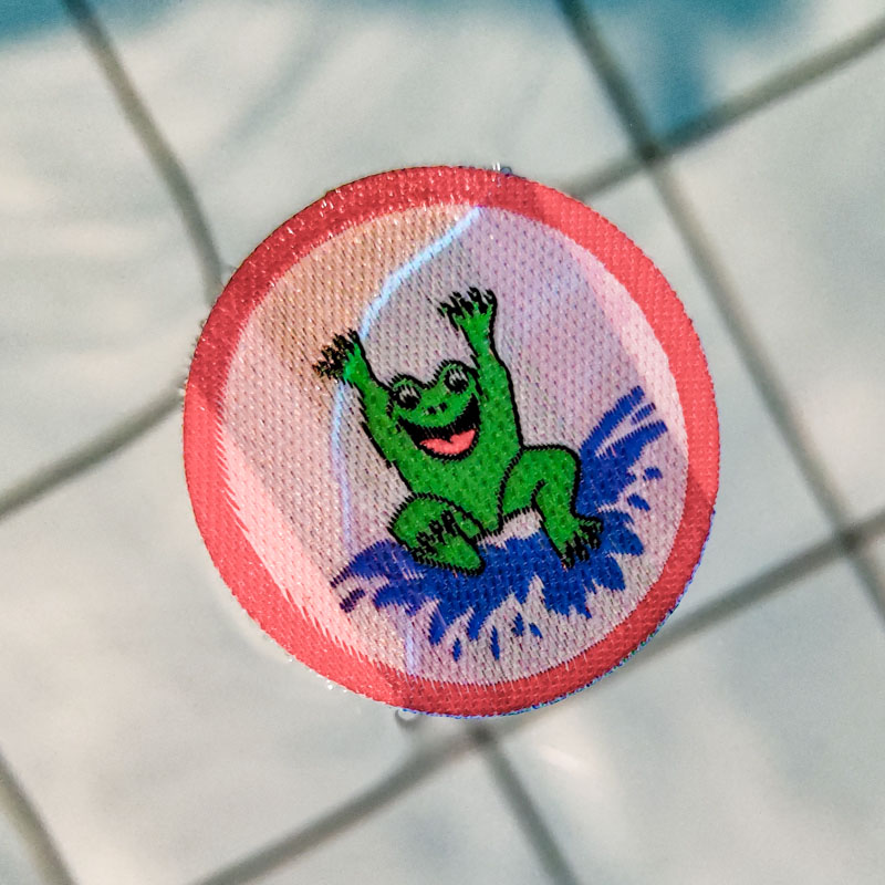Der Frosch ist der Übergang von der reinen Wassergewöhnung zur ersten aktiven Wasserbewältigung. Es ist das Abzeichen für die ersten zielgerichteten Aktionen im Wasser.