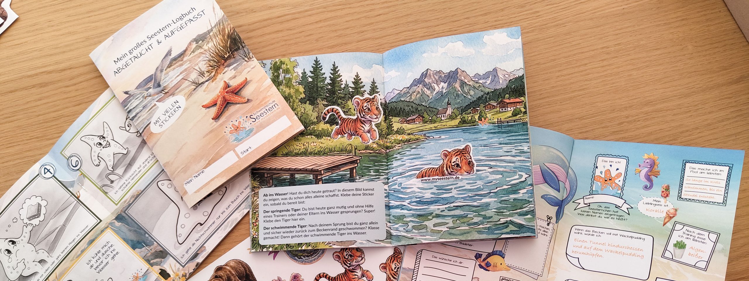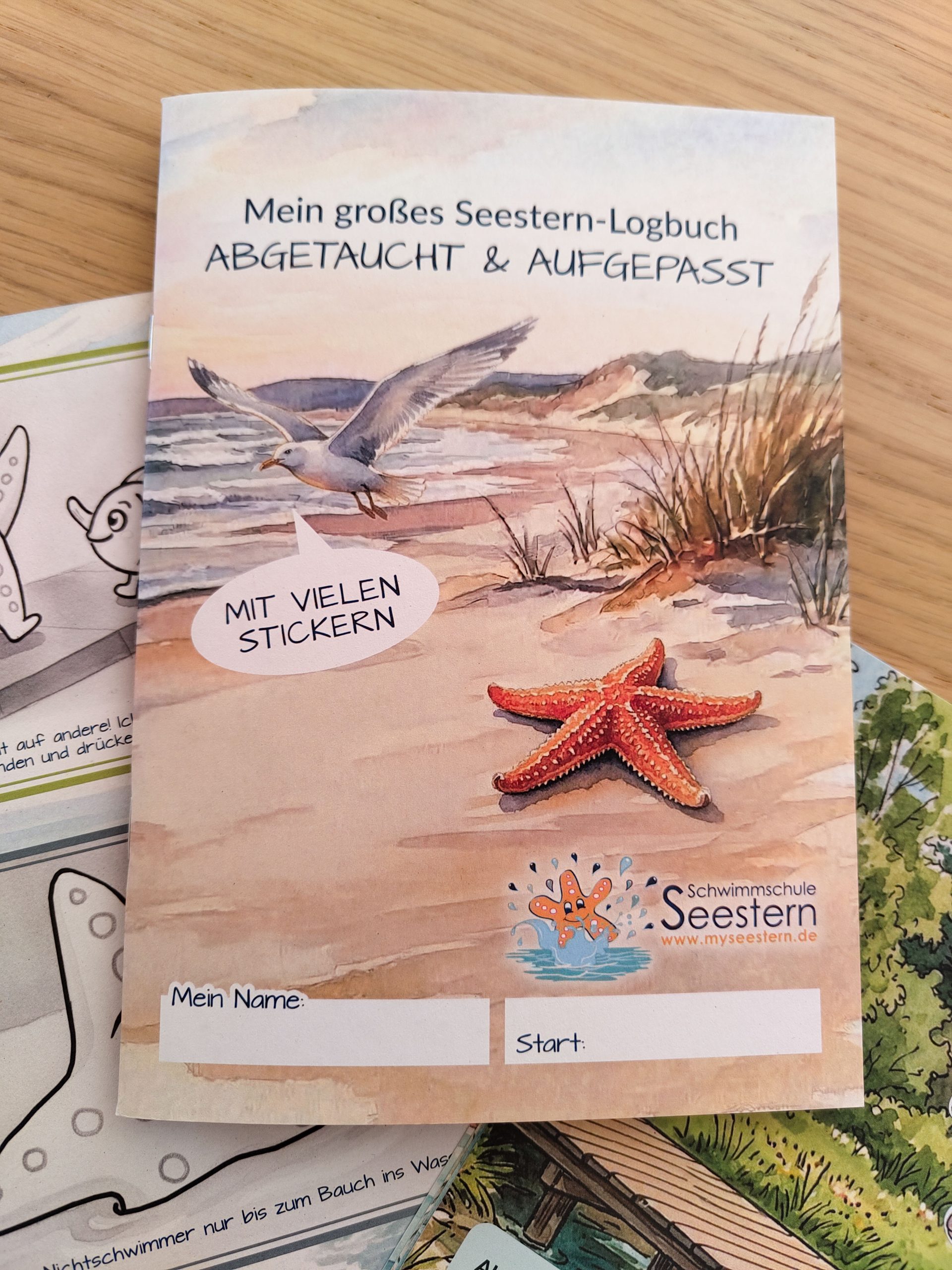 Um den Fortschritt im Schwimmkurs spielerisch festzuhalten, haben wir ein eigenes Stickerheft entwickelt. Es unterstützt Kinder dabei, ihre Erfolge sichtbar zu machen und sich intensiv mit dem Thema Wassersicherheit auseinanderzusetzen.